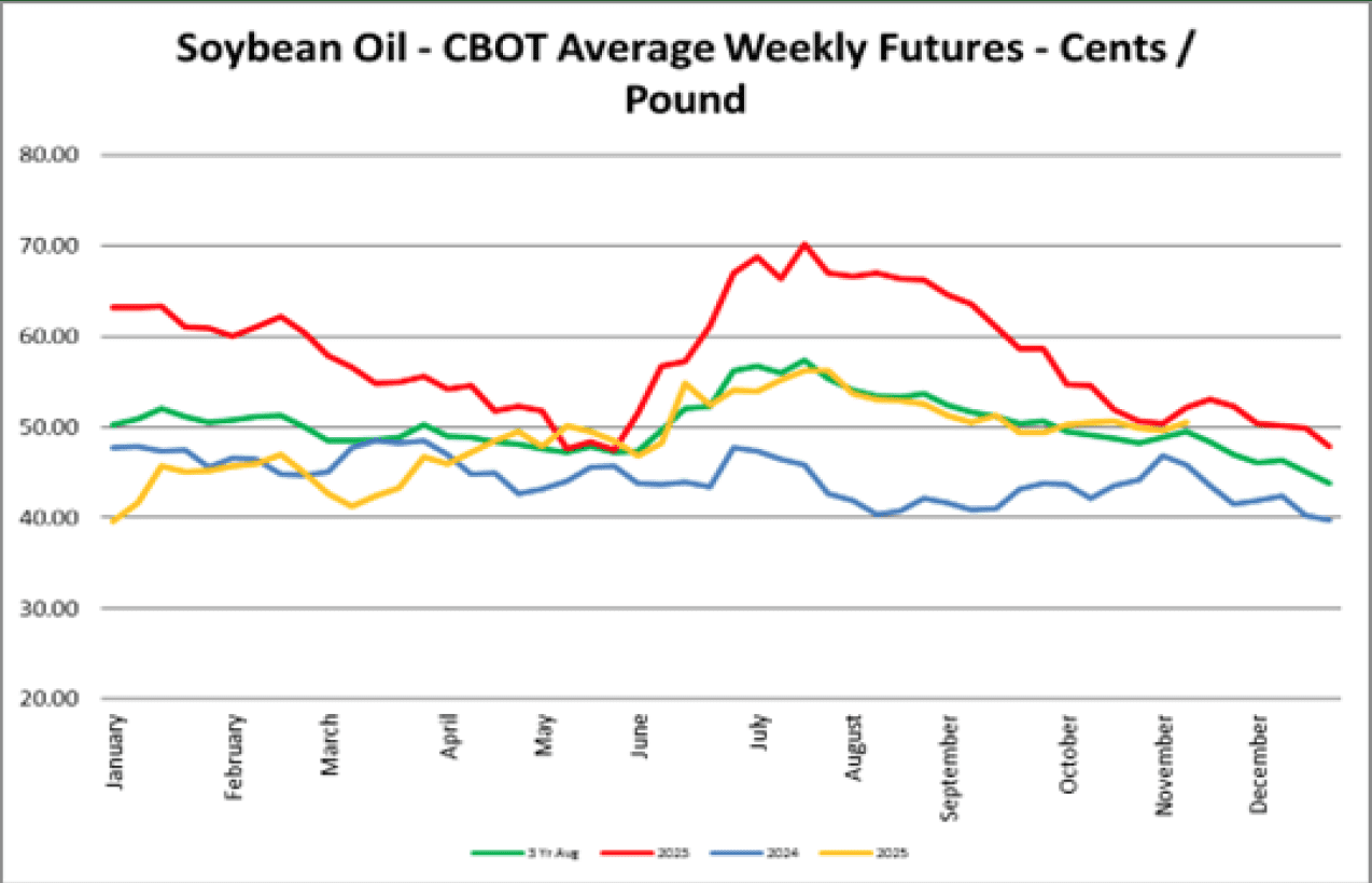 Prices and futures trended higher last week, supported by strong export demand and biofuel-related optimism. Market sentiment is bullish, with futures gains of 2% and spot prices holding firm above $0.50/lb. Watch for continued volatility tied to export pace.