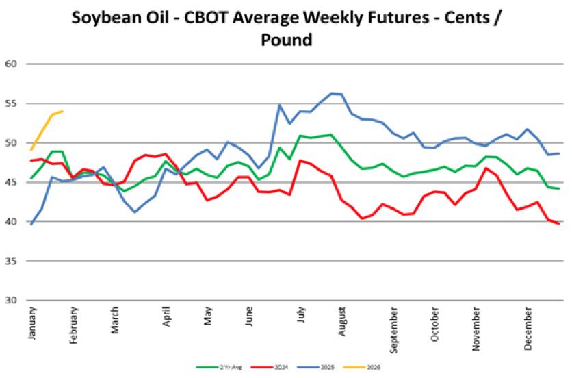 The weaker sentiment in soybean oil can be attributed to several market characteristics. One, the South American soybean harvest is progressing and trending to yield a record, or near-record crop. Next, the last NOPA report shows U.S. soybean oil stocks increasing.