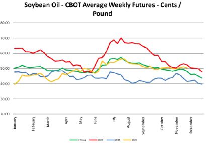 Soybean oil prices remained relatively firm but closed weaker by week’s end. The market is balancing weak exports, policy ambiguity around biofuels, and cost competition from heating oil—while underlying support persists via biofuel demand and U.S.-China trade recovery.