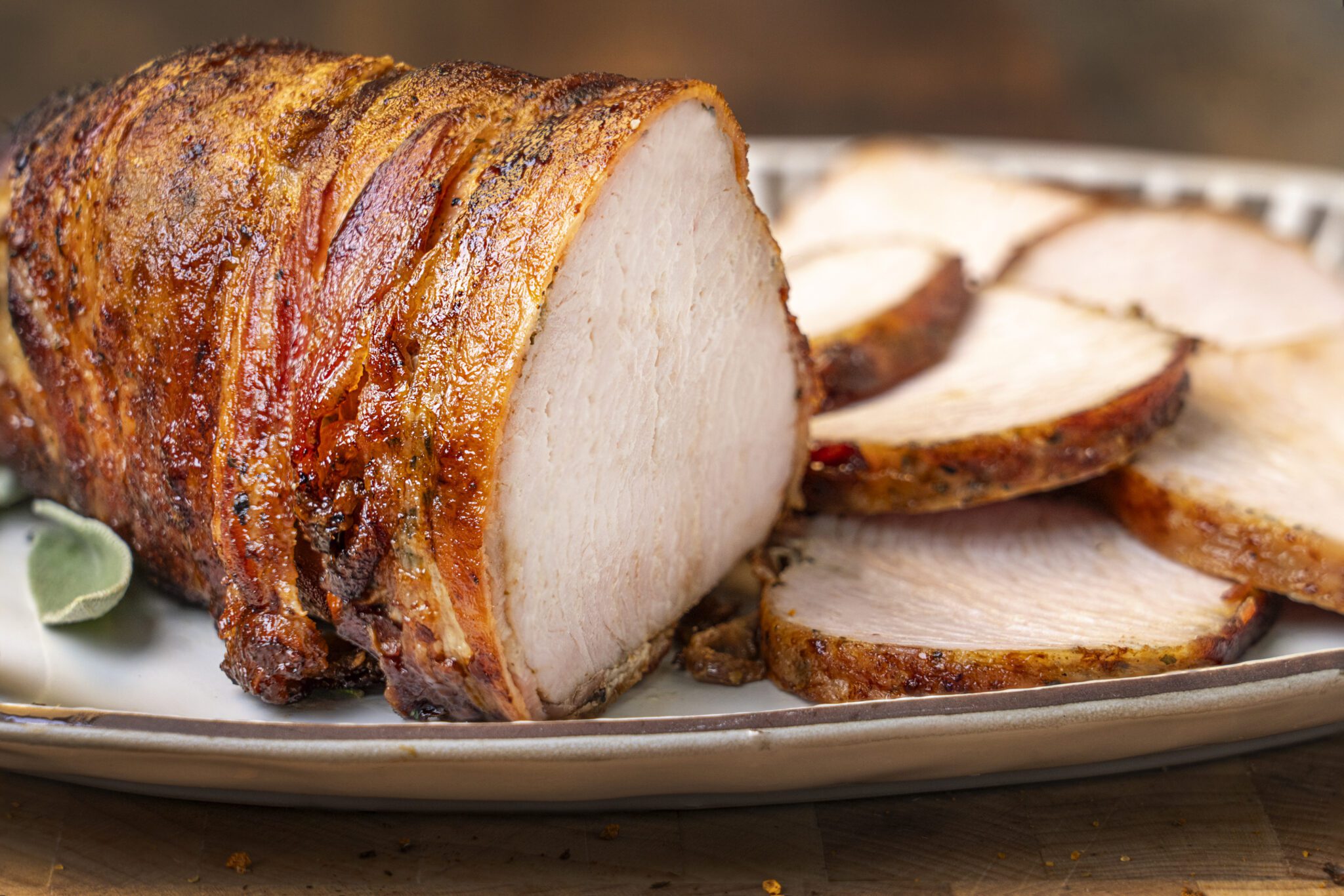 - For the Turketta, sear in a hot pan on all sides, then roast in a 325°F oven for 55-65 minutes or until an internal temperature of 165°F is achieved. Brush with 2 tablespoons of melted butter, cover with foil and let rest.