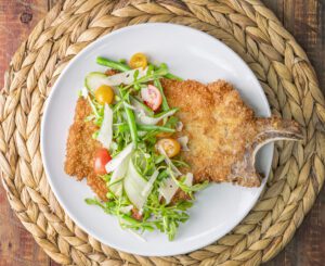 - For the chicken and fries, deep fry at 350°F for 5 minutes or until the chicken is 165°F and the fries are golden brown and crispy.