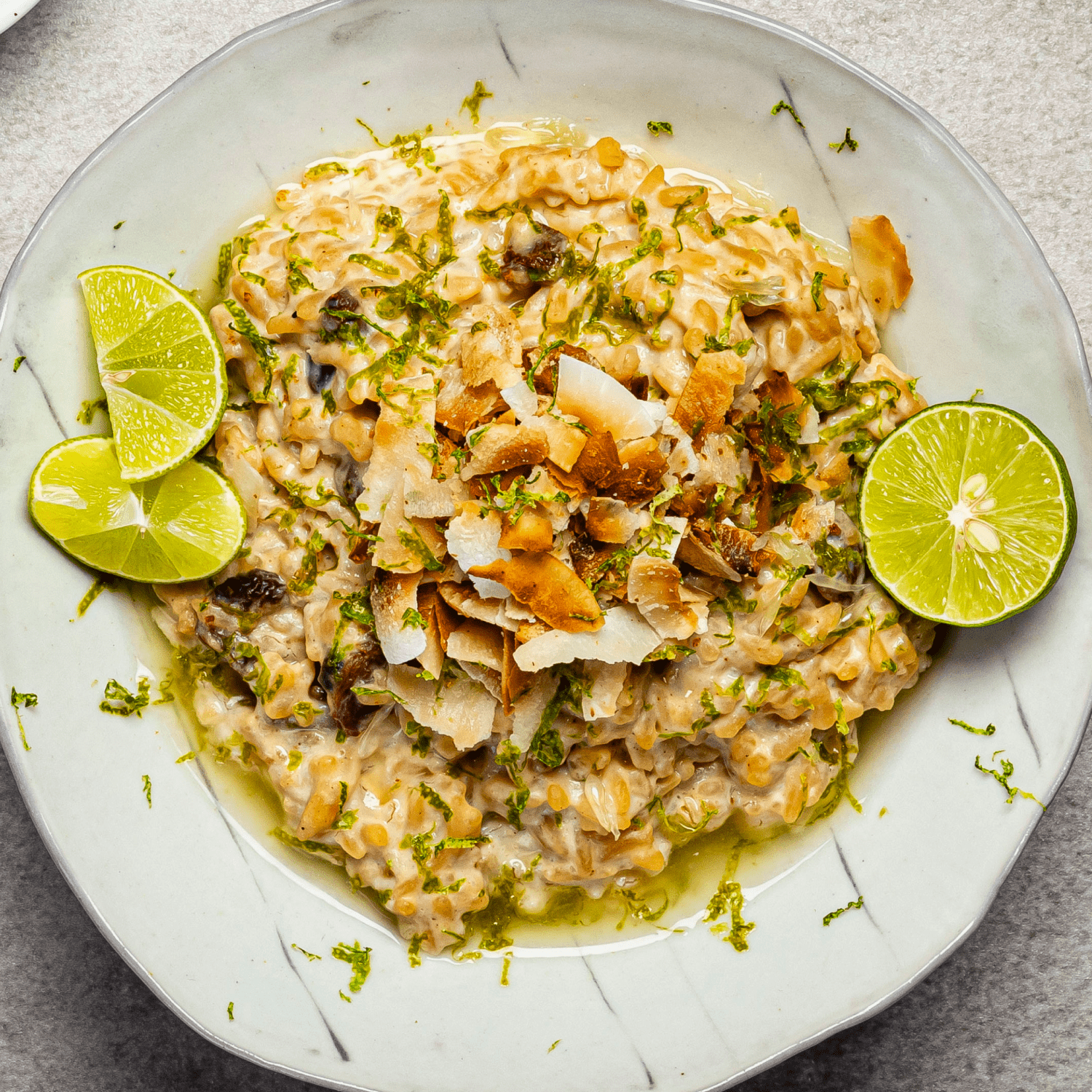 - Serve rice pudding garnished with coconut, lime zest, a bit of lime juice, and lime wedges.