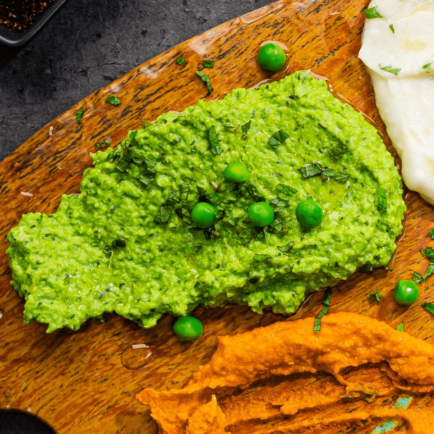 - To plate, place the purée in a bowl or plate, and drizzle with oil and garnish with mint.